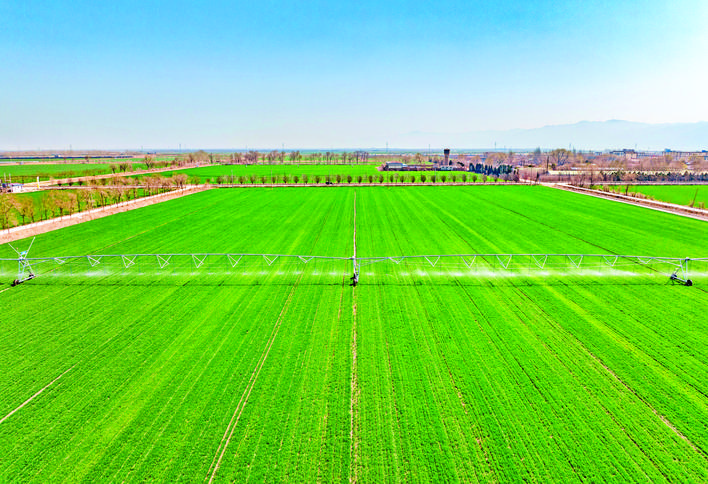 3月19日,永济市卿头镇董村农民利用喷灌设备对小麦进行春浇作业。眼下正值小麦返青时节,我市广大农民抢抓农时,利用现代化设备对小麦进行春浇。同时,加强对小麦的追肥、防虫、除草等各项工作,为今年小麦增产打好基础。