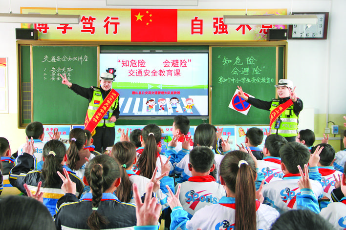 ▲3月24日,稷山县公安局交通管理大队宣传民辅警来到辖区稷峰镇管村小学开展“全国交通安全教育日”主题宣传活动。通过PPT课件、看图讲安全、交通安全标志拼图、互动游戏等方式开展了形式多样的宣传教育活动,还带领学生集中学习交通指挥手势,提高了每个孩子们知危险、会避险的安全防护意识,起到了良好宣传教育效果。