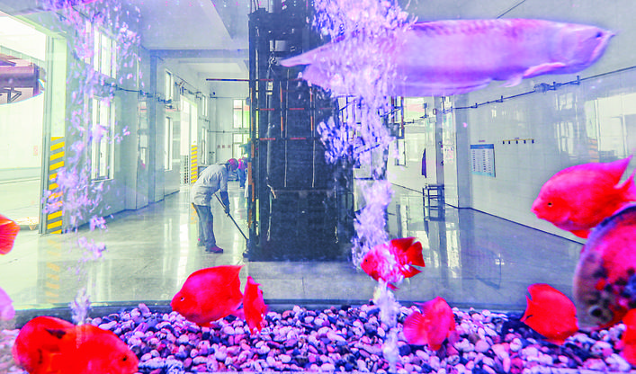 图② 永东股份产品打包车间内的生态鱼缸。