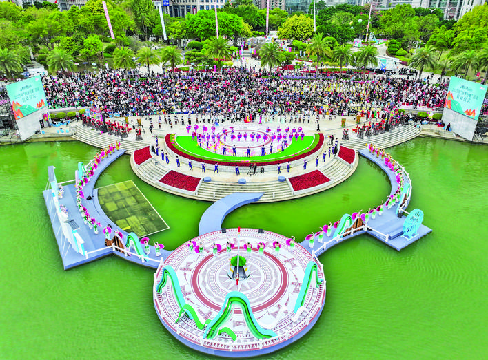 这是3月31日拍摄的开幕式现场(无人机照片)。 当日,2025年“广西三月三·八桂嘉年华”开幕式暨“四季村歌”活动启动仪式在南宁举行。 新华社记者 周 华 摄