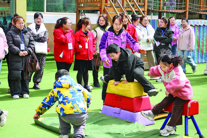 3月28日,闻喜县苗圃幼儿园师生展示“以体育德”课程项目,以进一步深化“健体润德创特色”主题教研活动。