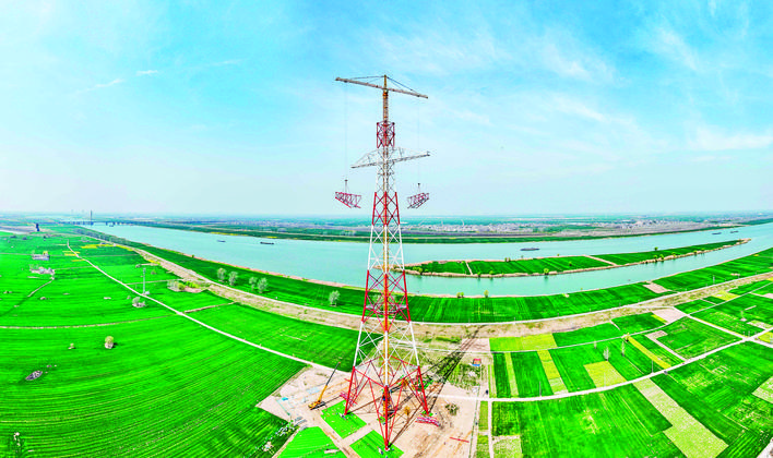 4月1日,在安徽省滁州市凤阳县淮河边,安徽送变电工程有限公司施工人员在高空进行输电塔封顶作业。 当日,经过建设者27天的奋战,安徽香涧至鹭岛500千伏线路工程淮河大跨越高193米的南岸跨越塔成功封顶。据悉,香涧至鹭岛500千伏线路工程线路全长136.8千米,建成后将进一步优化和改善安徽蚌埠、滁州部分地区的电网结构,提高供电可靠性和新能源消纳能力。