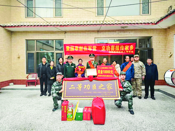 万荣县退役军人事务局为现役军人送立功喜报。(资料图片)