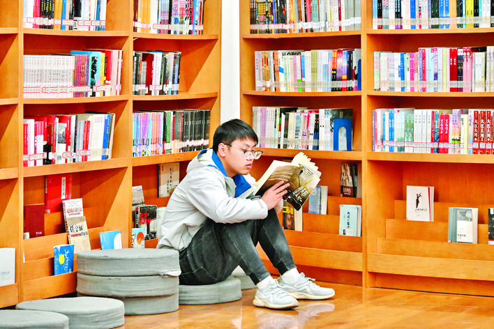 图② 4月1日,盐湖区党群服务中心河东书房,小朋友在家长的陪伴下读书。 图③④ 4月1日,市民在中心城区一家图书馆内读书。