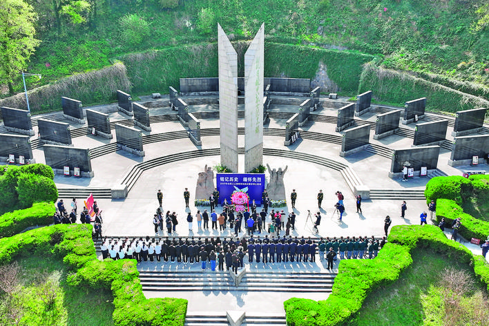 二〇二五年各界人士清明凭吊抗日航空英烈活动在南京航空烈士公墓举行(四月三日摄,无人机照片)。 新华社记者 毛 俊 摄