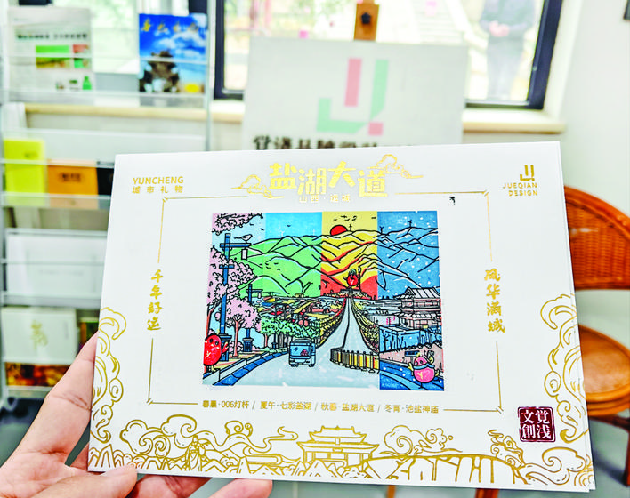 目前,觉浅品牌设计文化创意工作室围绕古建、盐湖、关公等运城特色文化主题,已成功开发30余款文创产品,销售额达数十万元。“我们不断拓展运城文创产品的销售渠道,不仅覆盖文创空间、线上平台,还延伸至主题网咖、电影IP首映等具有文化创意氛围的场所。盐湖风物志文创产品已相继在非遗市集等展出,即将上新运城博物馆。”胡松瑞说。