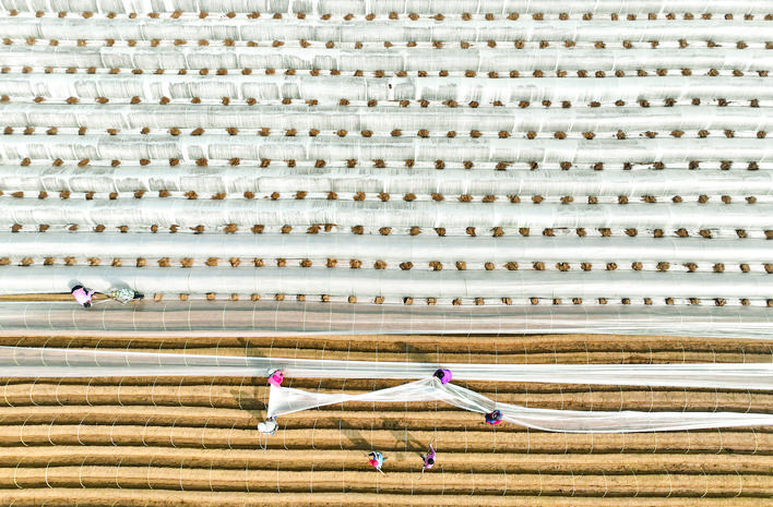 ▲4月8日,农民在山东省临沂市平邑县卞桥镇南安靖村丹参种植基地劳作。 春日里,各地春耕春管工作有序进行,呈现一派生机勃勃的农忙景象。 新华社发(武纪全 摄)