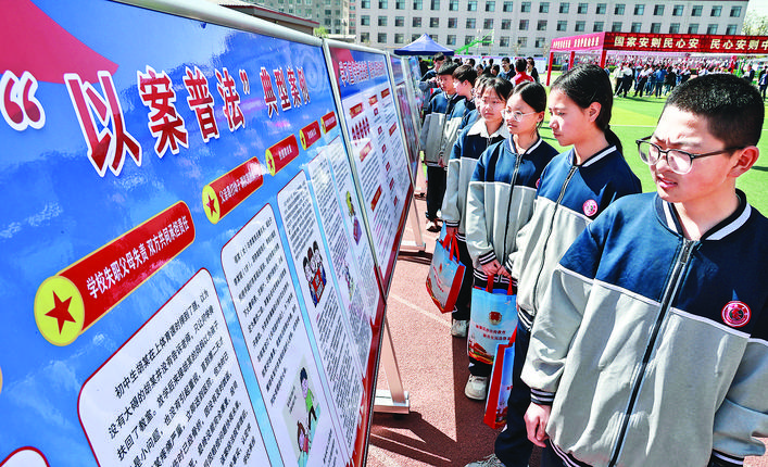 ◀4月10日,新绛县2025年全民国家安全教育普法活动,在新绛县希望学校开展,通过展板展示、答题等方式,让广大学生学习国家安全相关法律法规,强化安全责任意识。