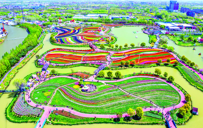 4月13日,游客在江苏省盐城市大丰区荷兰花海景区内赏花游玩。 新华社发(周社根 摄)