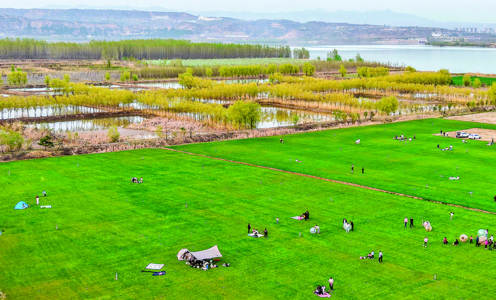 春风和煦,草长莺飞。4月6日,盐湖区解州镇五龙峪公园内的草坪上热闹非凡,众多市民游客前来踏青露营,“绿地共享”政策允许游客在此露营,市民游客尽情享受大自然的美好。
