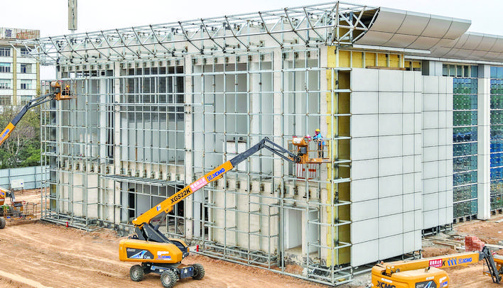 4月13日,绛县游泳馆项目建设现场,工人们在进行外立面施工作业。 据了解,绛县游泳馆项目是该县“十四五”时期重大民生工程之一,预计总投资2600万元。目前,该项目施工单位倒排工期,积极推进建设进度,争取早日建成投用。