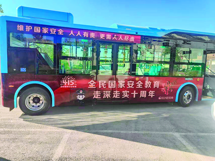 近日,为进一步增强国家安全教育宣传效果,临猗县通过车身喷绘、悬挂标语、电子屏显示、张贴宣传海报等形式,打造国家安全宣传主题公交车。