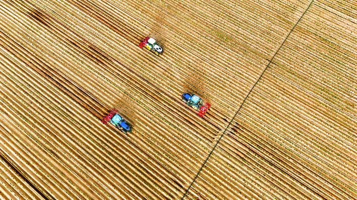▲4月13日,3台大型农机在万荣县裴庄黄河滩地进行耙地保墒作业。当地农户利用晴好天气,组织开展耙地保墒作业,为今年粮食丰产丰收打好基础。