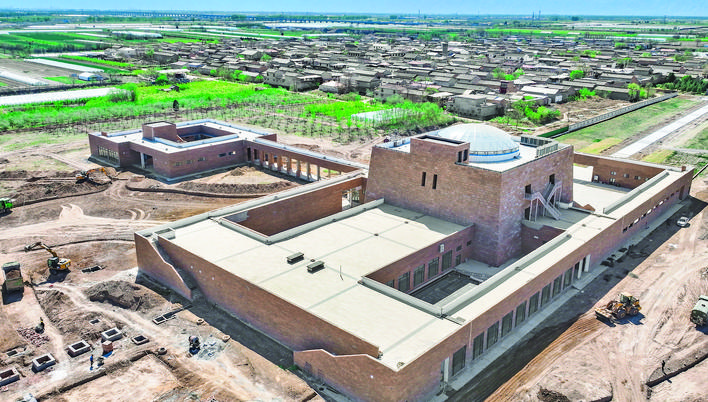 4月14日,位于临猗县牛杜镇王寮村的猗顿文化园建设项目工地,几台挖掘机轰轰隆隆地作业,初见雏形的猗顿文化园已显宏伟壮观之态。 据了解,猗顿文化园建设项目占地面积200余亩,工程分两期建成。一期工程已完成文化馆及辅助用房的主体建设,二期工程主要包括文化馆内的陈列布展、生态水景营造,以及场地整理、果树栽植和园林绿化等。文化馆展厅面积2500平方米,共分三层布展。一层为序厅,采用沉浸式展示方式探寻“商之源”的奥秘;二层聚焦“商之道”,详细呈现猗顿立志、创业、济世的历程;三层为“商之脉”,展示猗顿精神的传承。