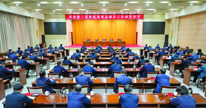 本报讯(记者 张 越)根据省委关于巡视工作的统一部署,近日,省委第三巡视组巡视运城市工作动员会召开。会前,省委第三巡视组组长贾文儒,副组长薛凤奎、刘强同市委书记储祥好、市长姚逊进行了见面沟通,通报了巡视任务和总体安排。会上,贾文儒作动员讲话,对做好巡视工作提出要求。储祥好主持会议并作表态发言。省委第三巡视组成员,姚逊、王立刚、陈杰等市四套班子领导,市中级人民法院、市人民检察院有关负责同志出席会议。市纪委监委和市委组织部班子成员、市委巡察办主任和巡察组组长,市委、市政府工作部门主要负责同志,各县(市、区)及运城经济技术开发区党政主要负责同志等列席会议。