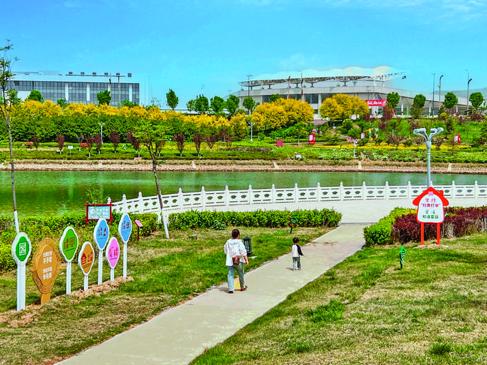 4月17日,市民在夏县白沙河湿地公园观光游玩,享受美好时光。