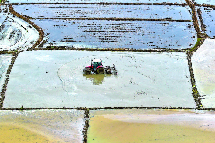 4月20日,在福州市长乐区江田镇青下龙村,农民驾驶农机翻整田地。 当日是谷雨节气,多地农民抢抓农时,开展农事活动,田间地头一片忙碌景象。 新华社发(王旺旺 摄)