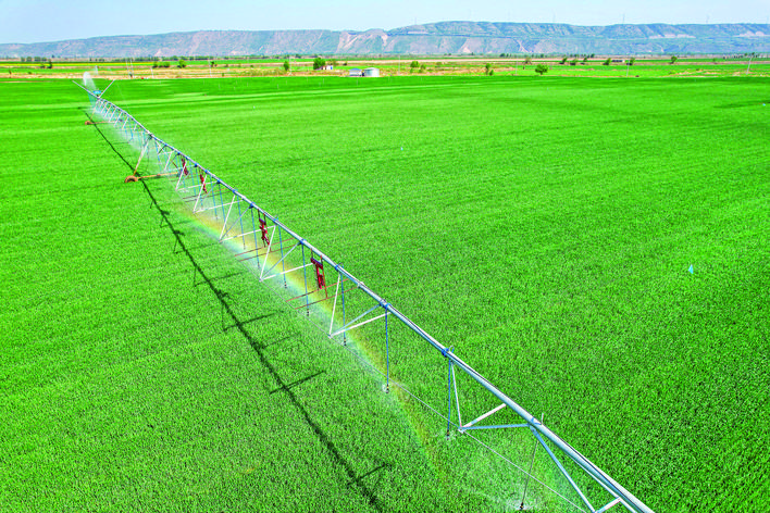 时下正是小麦拔节抽穗期,当地农民抢抓农时,使用各式现代化喷灌设备做好小麦春浇,为小麦丰产丰收打好坚实基础。