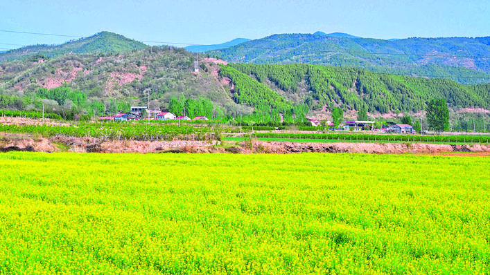 4月20日拍摄的垣曲县历山镇运通种植专业合作社800亩油菜基地。