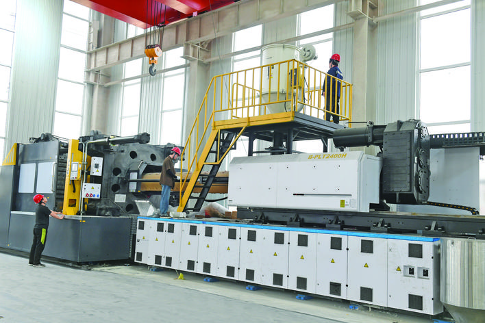 4月21日,稷山经济技术开发区西社园区标准化厂房内,工人在为山西山南智能科技有限公司安装调试年产200万套标准化塑料托盘生产线。