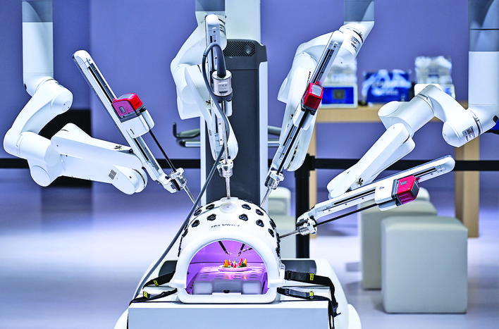 这是3月14日在重庆举行的2025中国医学装备展览会上拍摄的手术机器人演示现场。 新华社记者 王全超 摄