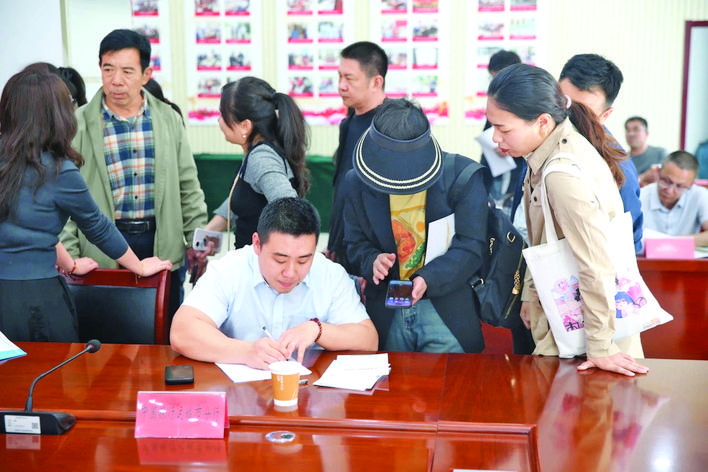 ◀市市场监督管理局(知识产权局)向青年创业者宣传知识产权领域创新创业激励政策。 (资料图片)