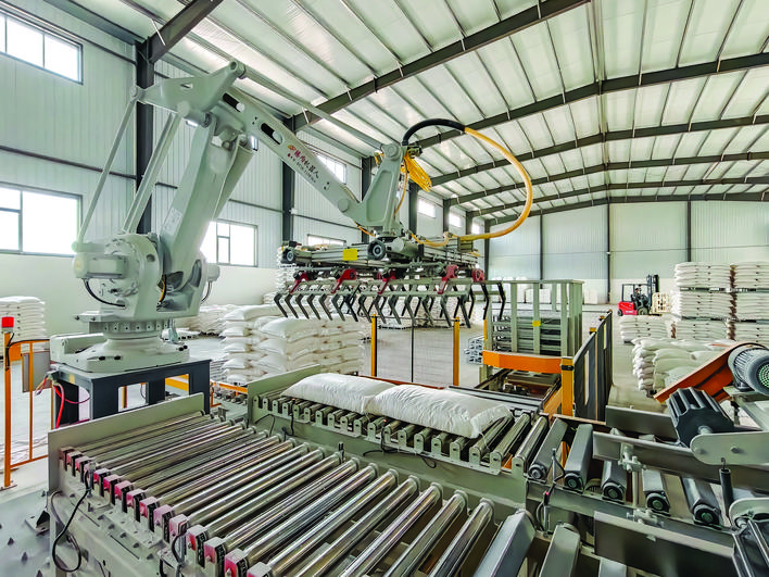 ▶4月24日,平陆县塬麦面粉加工有限公司自动化流水线在生产加工面粉。 据了解,该公司年可生产各种面粉10万吨,实现产值3亿元、利税1000万元,吸纳50余名周边农民工就业,带动小麦种植、储存、运输、粮食收购等行业发展,有效解决了当地及周边县市农民的余粮销售问题。