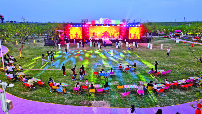 4月25日晚,音乐爱好者在稷山县“只为枣你”农文旅融合示范区枣乡音乐营地演奏音乐。