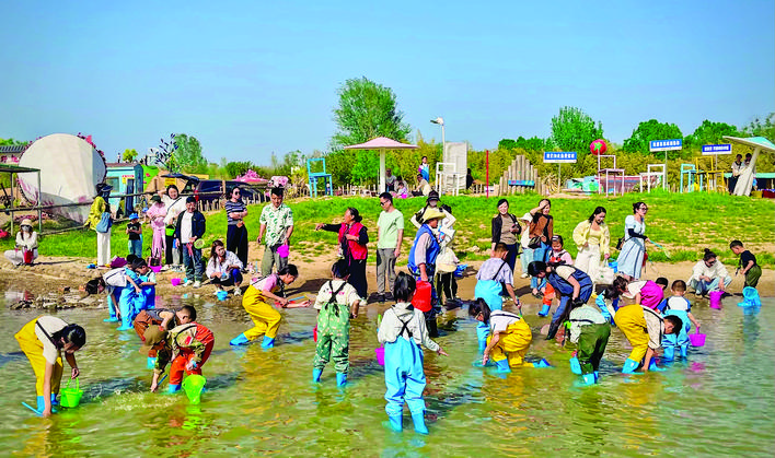 “来之前是因为这里近,没想到孩子玩得这么开心,玩得都不愿意回去了。”在盐湖区东郭镇野趣大自然亲子农场,来自盐湖区的张先生正带着儿子在抓鱼翻蟹,“前两天我在抖音平台上看到了野趣大自然亲子农场,觉得非常适合孩子来玩,所以周末我们就带她过来了。”