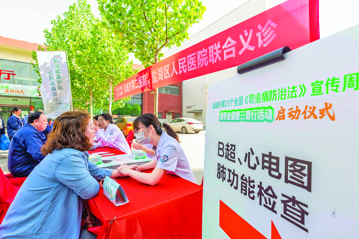 今年4月25日至5月1日是全国第23个职业病防治法宣传周,主题为“关爱劳动者心理健康”。我市宣传周系列活动由市卫生健康委员会主办、盐湖区卫生健康局承办,市疾病预防控制中心、市第二医院、盐湖区疾病预防控制中心、盐湖区人民医院、中磁科技股份有限公司协办。启动仪式上,市卫生健康委相关负责人介绍了我市职业病防治工作情况。据介绍,近年来,我市以健康运城建设为统领,深入推进职业健康保护行动,积极开展健康企业建设、争做“职业健康达人”活动,深化职业病危害专项治理,创新开展中小微企业帮扶行动,有效促进了各级各类用人单位主体责任的落实,职业病防治能力和水平得到明显提升。