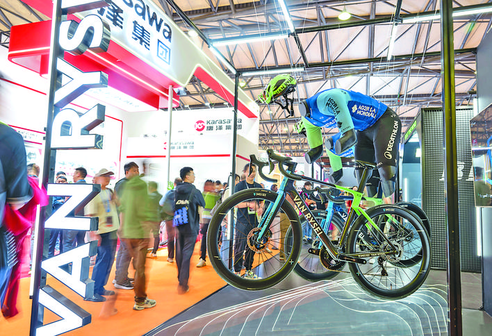 这是5月5日拍摄的2025中国国际自行车展览会现场。 5月5日至8日,2025中国国际自行车展览会在上海新国际博览中心举行,吸引近1600家国内外企业参展。 新华社记者 才 扬 摄