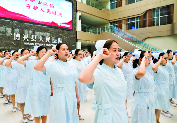 5月9日,山东省博兴县人民医院护士参加集体宣誓活动。 新华社发(陈 彬 摄)