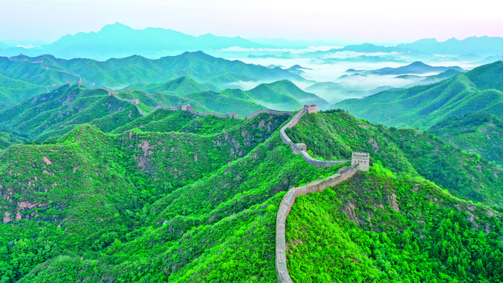 这是5月10日清晨在河北省承德市滦平县拍摄的金山岭长城云雾景象。5月10日,雨后清晨,位于河北省承德市滦平县的金山岭长城景区出现云海景观,云雾与长城、山峦相互辉映,如诗如画,美不胜收。新华社发(周万平 摄)