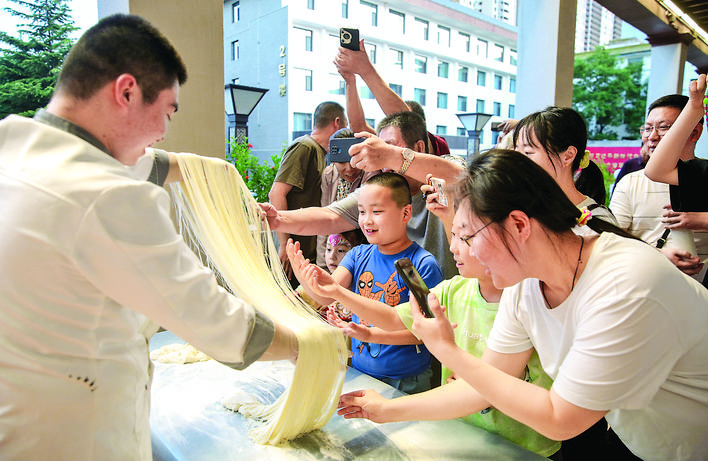 左图 非遗面食表演在运城宾馆精彩上演。 梁海岩 摄