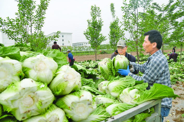 近日,闻喜县桐城镇种植户在田间采收春白菜,地头客商忙着装车,构成一幅夏初丰收图景。