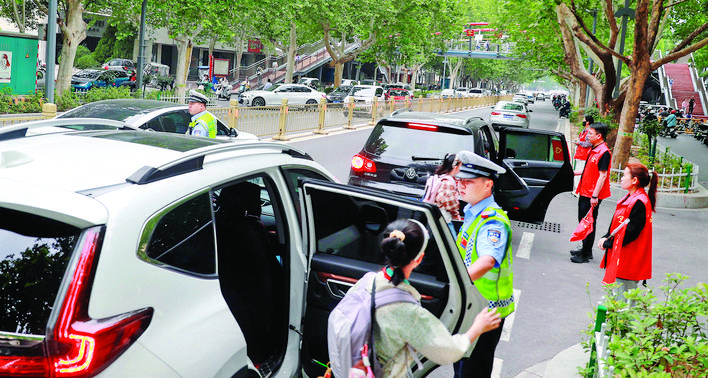 为营造和谐有序、畅通安全的上下学交通环境,5月13日,盐湖公安分局交警大队城区中队,总结上下学期间交通流量规律,提前部署,安排护学岗民警针对上学放学交通高峰时段加大管控力度,重点对校园周边车辆乱停乱放、占道、逆行、驾乘两轮电动车不佩戴安全头盔等交通违法行为进行集中整治,全力以赴为广大中小学生保驾护航。