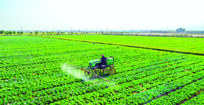 5月10日,工人驾驶植保机在夏县世邦农业开发有限公司供港蔬菜基地给蔬菜喷施叶面肥。当前,正值夏季蔬菜管理的关键时期,该公司抢抓农时,加紧对供港蔬菜进行田间管理,保障市场供应。 特约摄影 张秀峰 摄
