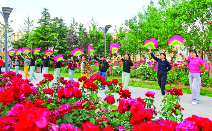 5月12日,市民在夏县白沙河桥头的一处“口袋公园”晨练。近年来,夏县因地制宜建设“口袋公园”,增进民生福祉。 特约摄影 张秀峰 摄