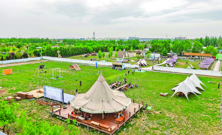 5月17日,在夏县裴介镇师村星野精致露营基地,游客在享受休闲时光。