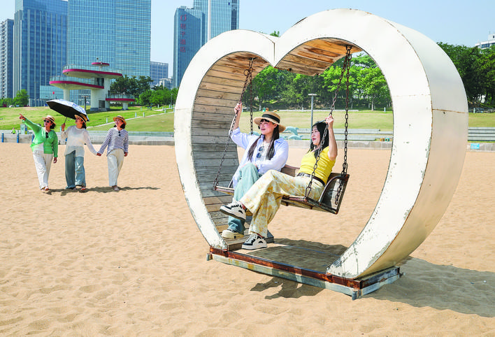 5月19日,游客在江苏连云港在海一方公园游玩。 新华社发(王健民 摄)
