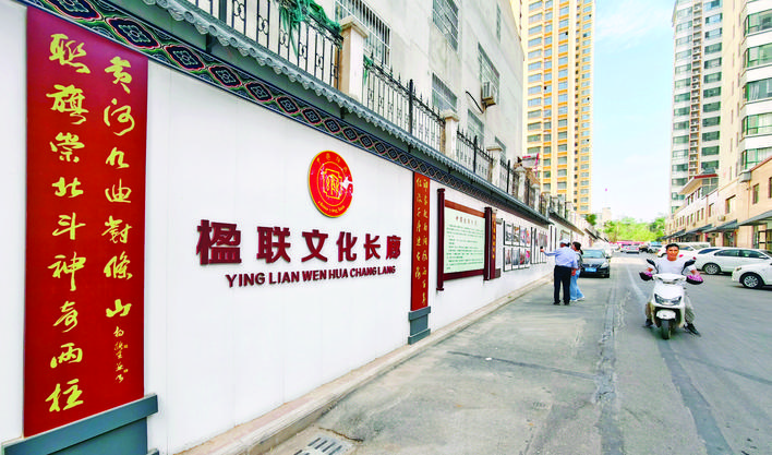 下图:市楹联学会精心打造的楹联文化长廊。 本报记者 金玉敏 摄