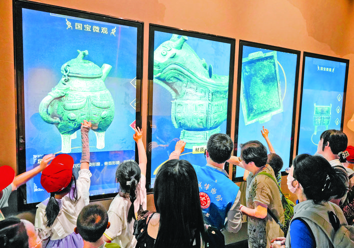 游客在运城博物馆感受数字化文物展示
