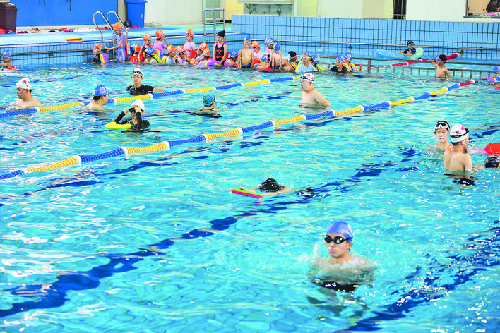 除了娱乐性、互动性、安全性更强的水上乐园,中心城区大大小小的游泳场馆,也是市民戏水的夏季欢乐场。
