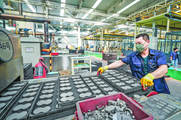 东睦磁电工人在生产零件。 本报记者 陈方斌 摄