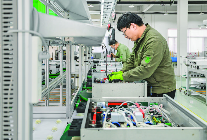 11月23日,山西国臣直流配电工程技术有限公司生产车间内,工人在装配电子变换器产品。该公司依托自主核心技术,为客户提供高效、可靠的直流配电解决方案。 本报记者 常 奇 摄