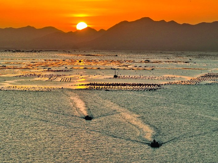 ▲11月28日,福建省宁德市霞浦县海上养殖区两艘渔船在日落时分返港(无人机照片)。 11月29日,第九届宁德(霞浦)大黄鱼产业创新发展大会在霞浦县举行。本届大会属于福建省推进海洋经济高质量发展百场项目之一,来自全国各地的专家学者、企业代表等齐聚一堂,共同研讨大黄鱼育种、养殖、加工销售和品牌运营等全产业链条中的产业焦点与关键技术。 2024年,宁德市大黄鱼产量达21.49万吨,全产业链产值突破200亿元,产品远销60多个国家和地区。 新华社记者 姜克红 摄