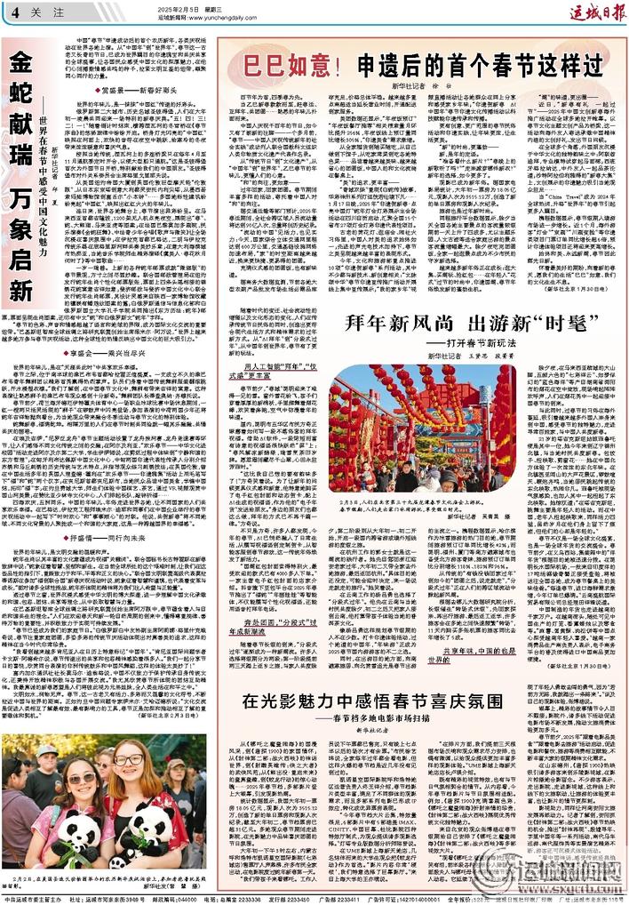 1月30日,《光明日报》头版以《山西:钟鼓声声文韵醇》为题,将视线投向新绛县绛州署景区,生动介绍了我市通过丰富多彩的文艺节目欢庆新春的热闹景象;
