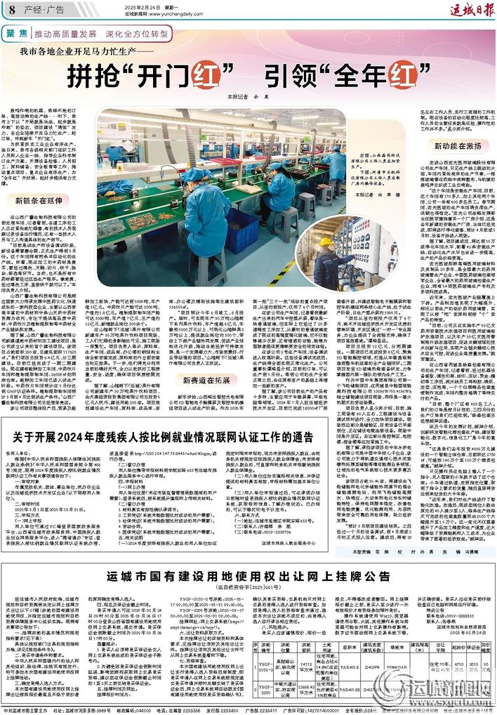 山西日报讯(记者 张巨峰)2月20日至21日,省委副书记、省长金湘军在运城市调研。他强调,要深入贯彻习近平总书记在民营企业座谈会上的重要讲话精神和对山西工作的重要讲话重要指示精神,落实省委、省政府部署要求,聚焦新质生产力方