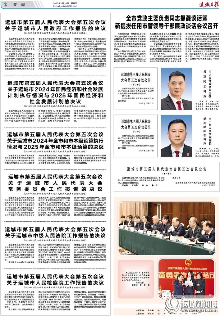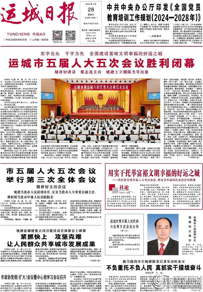 运城市第五届人民代表大会第五次会议,于2025年2月27日选举姚逊为运城市人民政府市长。