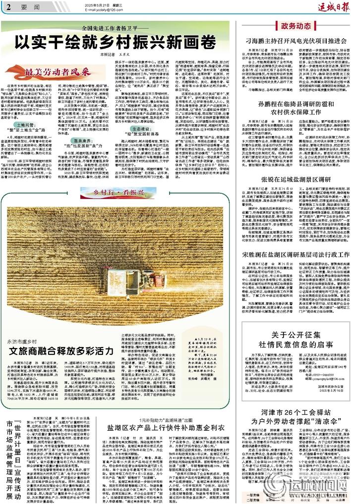 本报讯(记者 王月文)5月19日,副市长张锐深入运城盐湖景区调研,实地了解景区建设运营情况,围绕生态景观提质、服务品质升级作出部署安排。